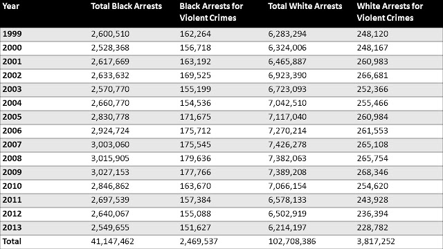 Speaking of crime, anti-White racism has profoundly distorted the public's perception of inter-racial crime as well as police brutality. In recent years, it seems as if every few months we hear a new story about whites, either police or private citizens, killing blacks. Based on the media's portrayal someone could easily get the impression that homicide is much more often White on Black than Black on White. Crime statistics paint a strikingly different picture. Data compiled by the Bureau of Justice Statistics shows that the rate of Black on White homicide has been roughly three times the rate of White on Black homicide for at least the last 35 years. Moreover, an analysis of 6 years of data by the Department of Justice showed that roughly 500 more Whites than Blacks were killed during arrests. Of course, this is partly due to the fact that the White population in the United States is much larger than the Black population. But if we divide the arrest fatality numbers by the violent crime numbers provided by the FBI's Uniform Crime Report we see that a White violent criminal is more likely than a Black violent criminal to be killed by police. Any American who watches the news knows the names of several blacks killed by Whites in recent years (Micheal Brown, Trayvon Martin, and Freddie Gray, for instance). By contrast, even though more Whites are killed by police, and even though more Blacks kill Whites than the other way around, and even though White criminals are more likely than Black criminals to be killed by police, few people know the names of any Whites recently killed by law enforcement, or by Blacks.